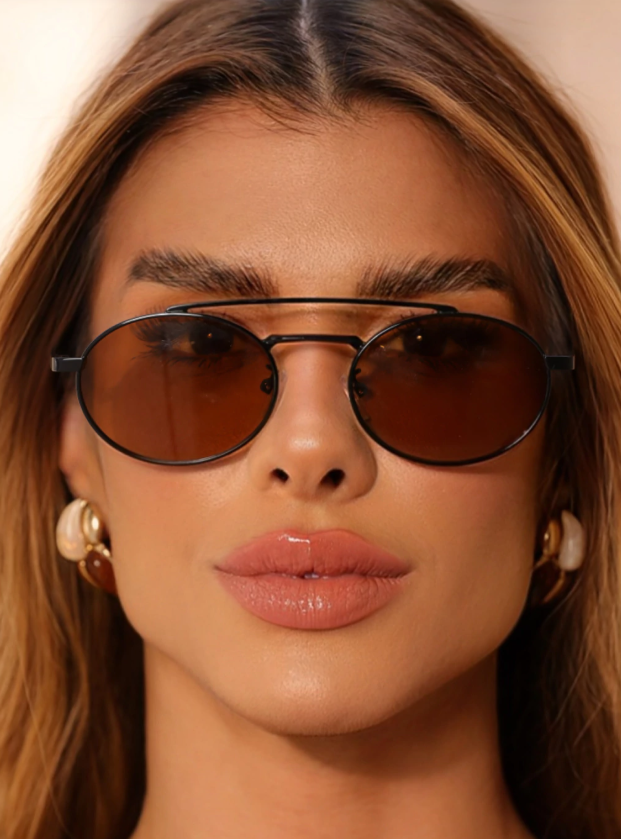 O New Gold é a escolha ideal para quem busca um acessório sofisticado e moderno. Com formato oval e armação em metal preto, ele entrega um visual elegante, universal e extremamente fácil de combinar. A lente marrom adiciona um toque clássico ao design, proporcionando conforto visual e um acabamento que harmoniza perfeitamente com o preto da armação.
