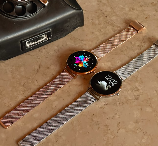 Seu design fino e elegante é complementado por uma tela AMOLED de alta resolução, revestimento Gorilla Glass genuíno e caixa em aço inoxidável de 40mm, garantindo beleza, durabilidade e presença em qualquer ocasião.